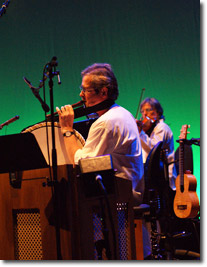 Then the band played another of my favourite Gryphon tracks. It was an improvisation of “The Unquiet Grave”, once again with a great duet of vocals from Dave playing the female role this time and Brian playing the ghost of the male lover. For all of those who know the song, they will recognise that the genders of the ghost and the grieving lover had been swapped for this performance but it worked remarkably well.