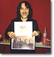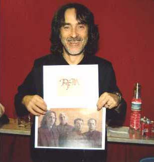 California!!" Flavio was delighted as well, and Di Cioccio immediately accepted to have his picture taken from me while holding Nick's artworks (mmmh, probably it'd look great on the website as well....)